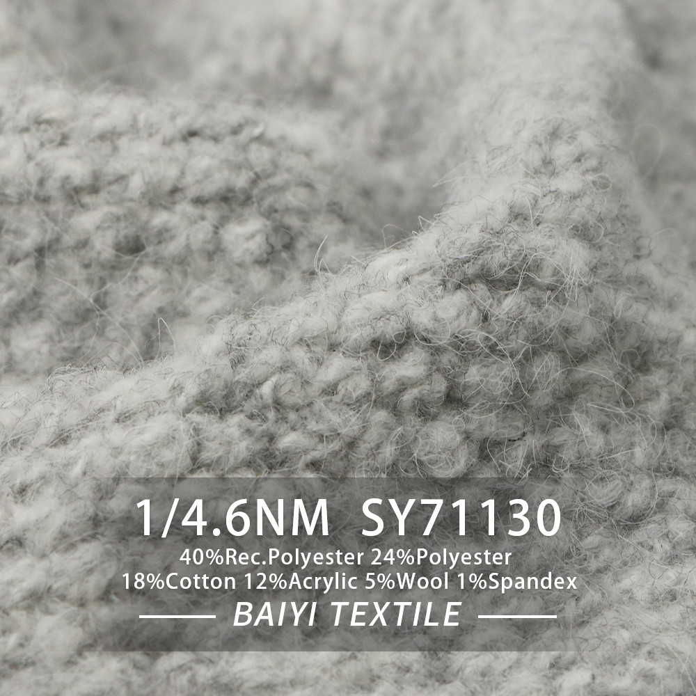 | คุณสมบัติ: | ปุย, ต่อต้าน Pilling, อบอุ่น | Composition: | 40%Rec.Polyester 24%Polyester 18%Cotton 12%Acrylic 5%Wool 1%Spandex |